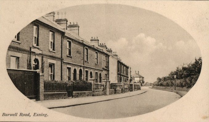 bottom of Burwell Road, note wide pathway on right hand side. Card dated 1908 |