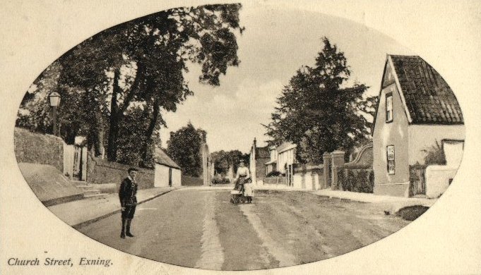Church Street. The white building on the left was originally stables, Then a garage and now West's car sales. Card dated 1911. |