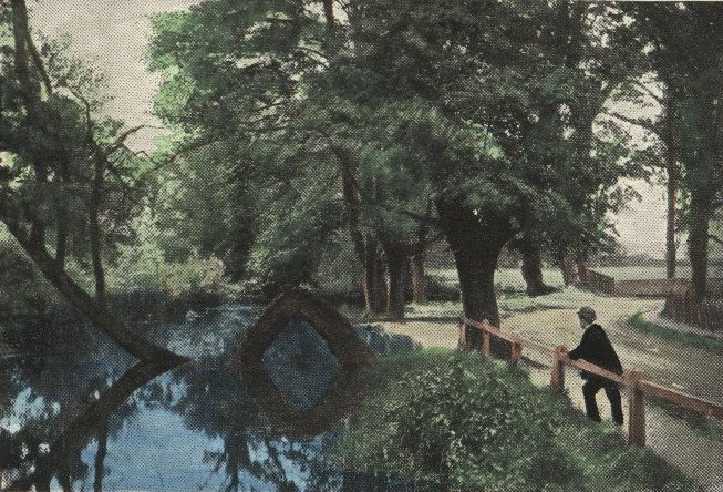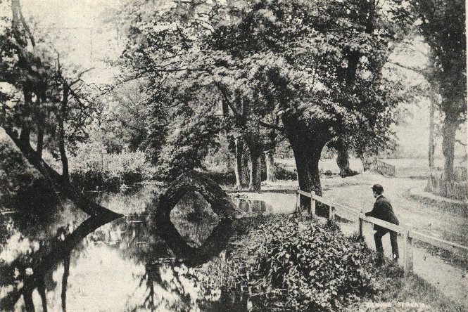The "Bent Tree", in the river in Ducks Lane, at the turn of the century, a well known local novelty. |