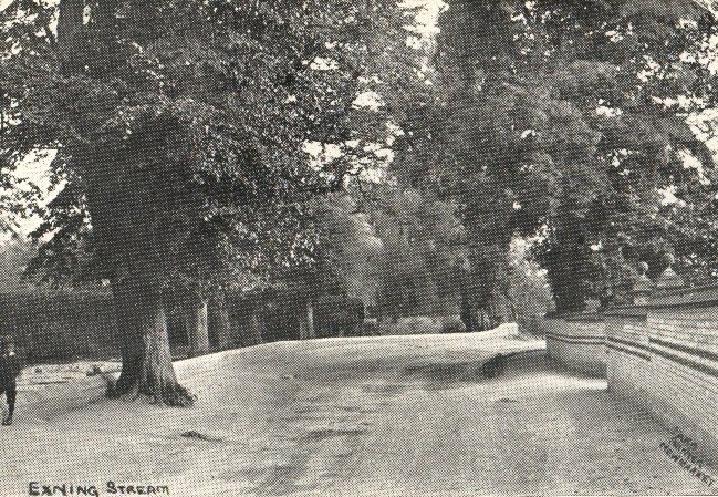 Exning Stream, the wall on the right arounr Harraton Lodge is still the same today. |