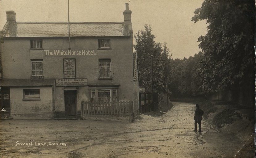 White Horse Inn and Swan Lane, Card dated 9.9.1908. Selling Royston Ales and Stout. Licensee William Gale |
